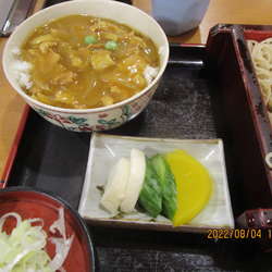 本日のおすすめ「ミニカツカレーセット」セットはもり蕎麦。