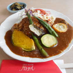 大きな揚げたてのエビフライを2本のせたボリューム満点のカレーです。