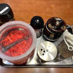 豚骨ラーメン屋ならではの、卓上の紅生姜を加えられるのが、味変の面白さに繋がります。