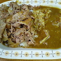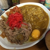 【注文】牛丼カレー(中):850円、辛口:50円、サラダ:50円