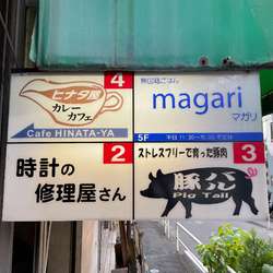| 備考 | ホントに古〜い、まさに雑居ビルの4階にあります。 基本はCafeなので、のんびり本を読めるような空間です。 古書好きさんたちのオアシスのような感じです。 三角地帯の角ビルなので、二方に小さな赤いHINATAYAの 旗が飾られています。入り口は必死でさがしてください。 何と言っても手で開けるタイプのエレベーターがビックリ! |