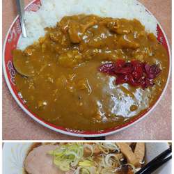 ニンニクの効いたカレーはいくらでも食べられるら不思議。ラーメンをカレーに浸して食べるのも乙。
